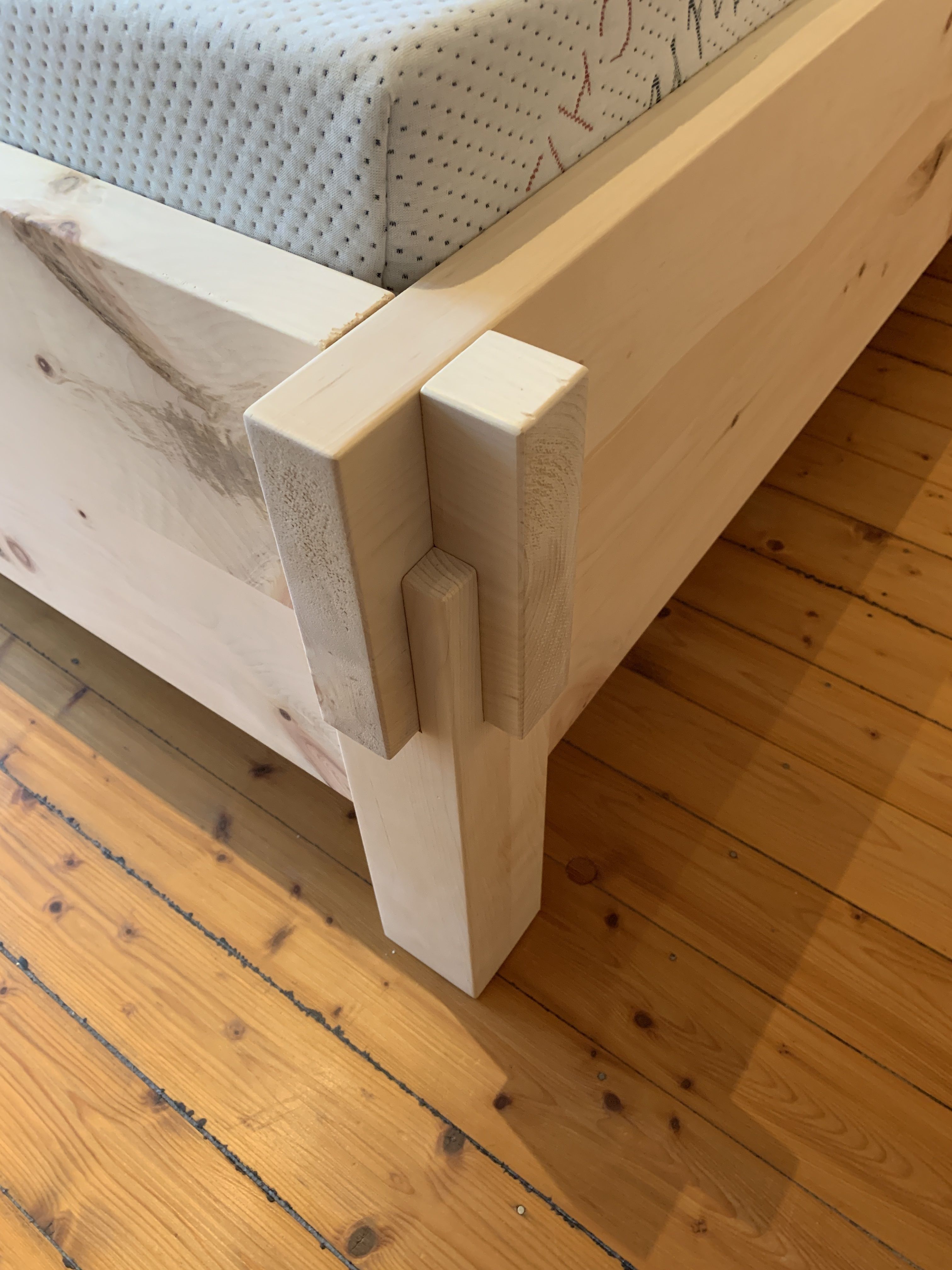 Unsere Zirben-Betten werden ohne Metallverbindungen und Schrauben hergestellt. Die Konstruktion ist so durchdacht, dass die Betten durch gekonnte Holzverbindungen einfach zusammen gesteckt werden können.